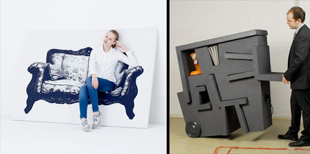 Eco-friendly office and bedroom furniture made out of recycled cardboard.
